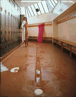 Slip-retardant sheet for safety in wet areas with barefoot traffic and soft-soled footwear.